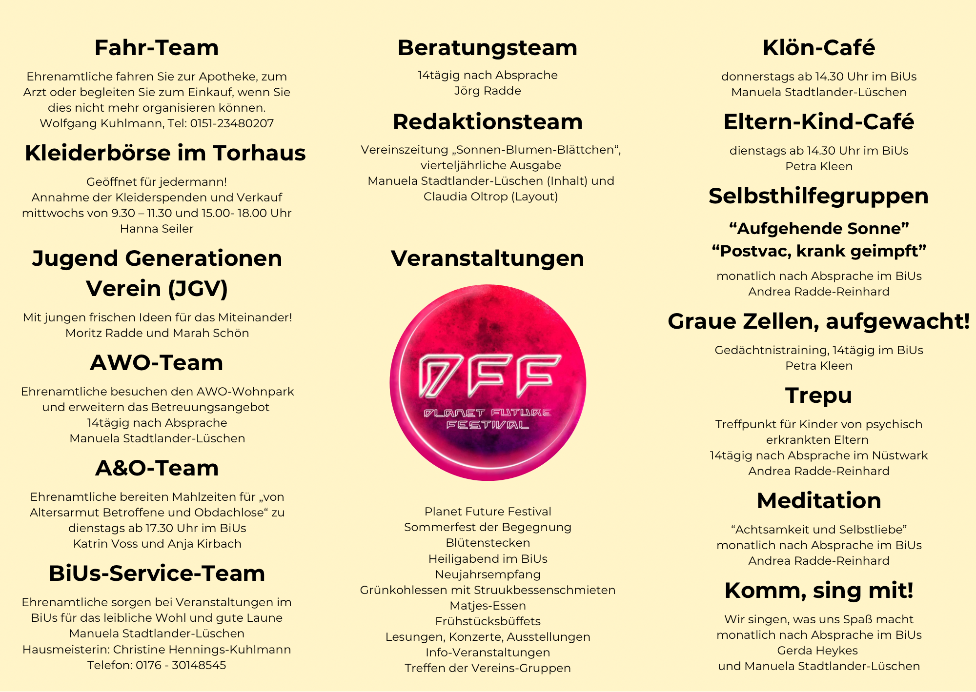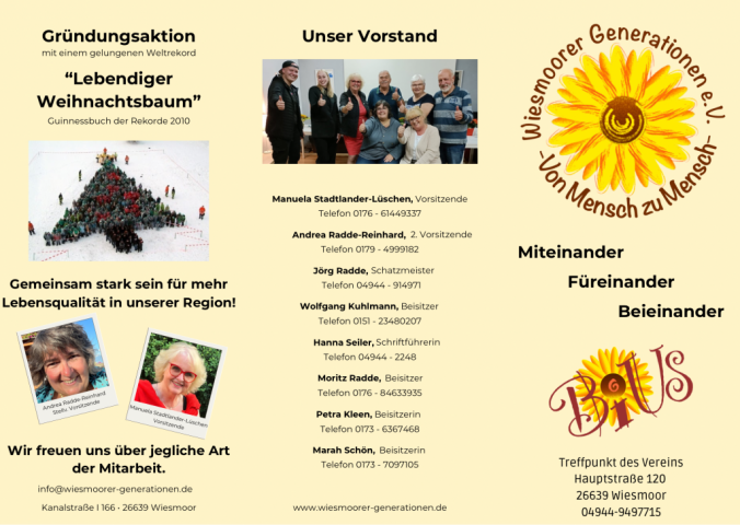 Unser Vereinsflyer Der Vereinsflyer des Wiesmoorer-Generationen e.V. informiert über alle Tätigkeitsfelder des Vereins.